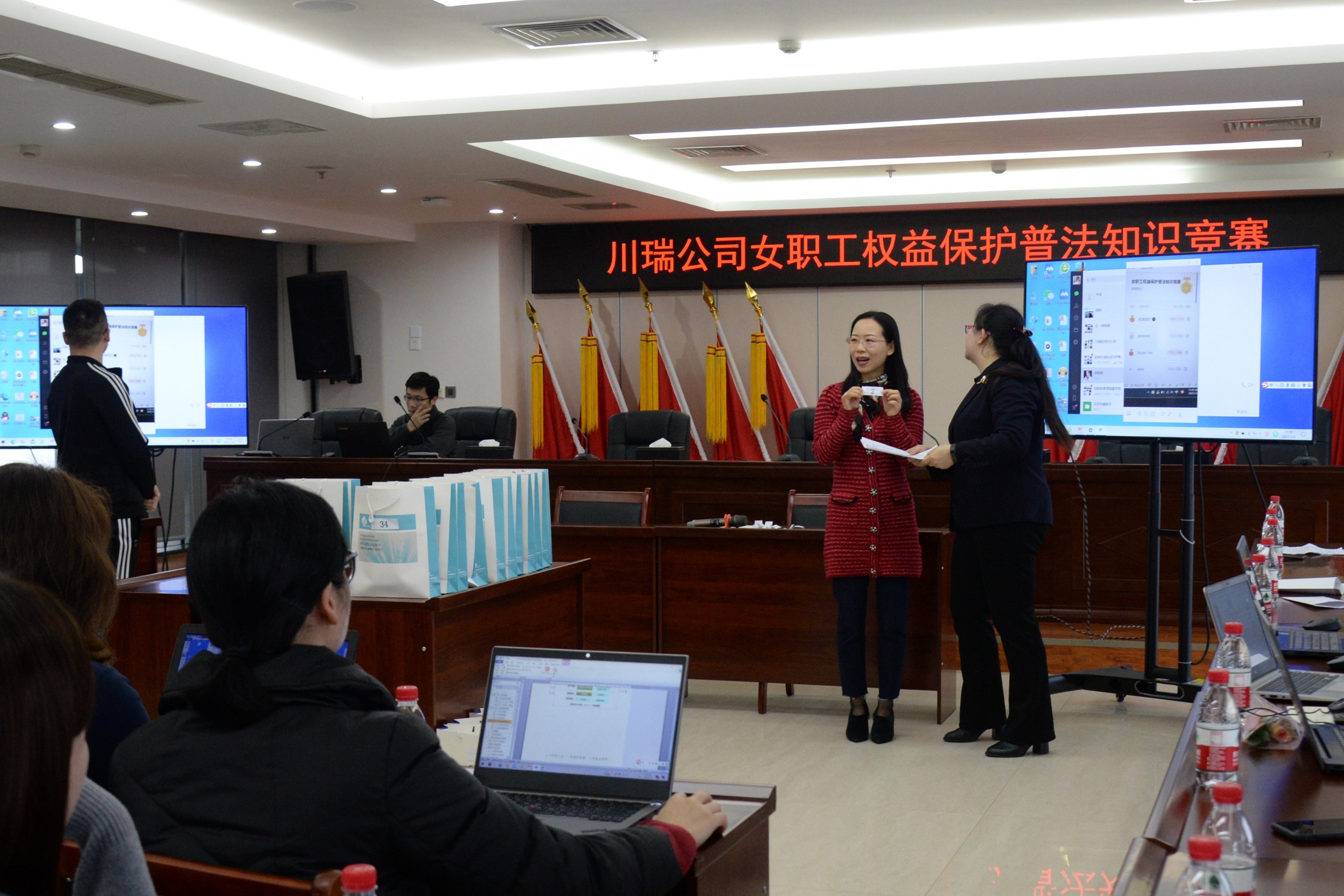 公司總部“三八”國際勞動婦女節(jié)系列活動分為:思想引領(lǐng)活動—集中觀看“中國夢•勞動美—巾幗跟黨走 奮進(jìn)新征程”喜迎中國共產(chǎn)黨百年華誕暨紀(jì)念“三八”節(jié)四川省女職工風(fēng)采展示;女職工關(guān)愛行動—愛心小屋創(chuàng)建及掛牌;女職工維權(quán)行動—女職工權(quán)益保護(hù)普法知識競賽;女職工健歩走行動—插花品香及青龍湖健步走。活動現(xiàn)場氛圍良好、溫暖舒心。